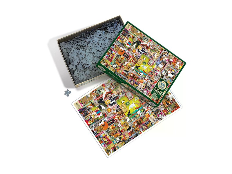 Die vielfältigen Motive des 1000-teiligen Puzzles sprechen ein breites Publikum an. Cobble Hill Puzzle zeichnen sich durch Nachhaltigkeit aus. Die gelegte Grösse beträgt 68x49cm.