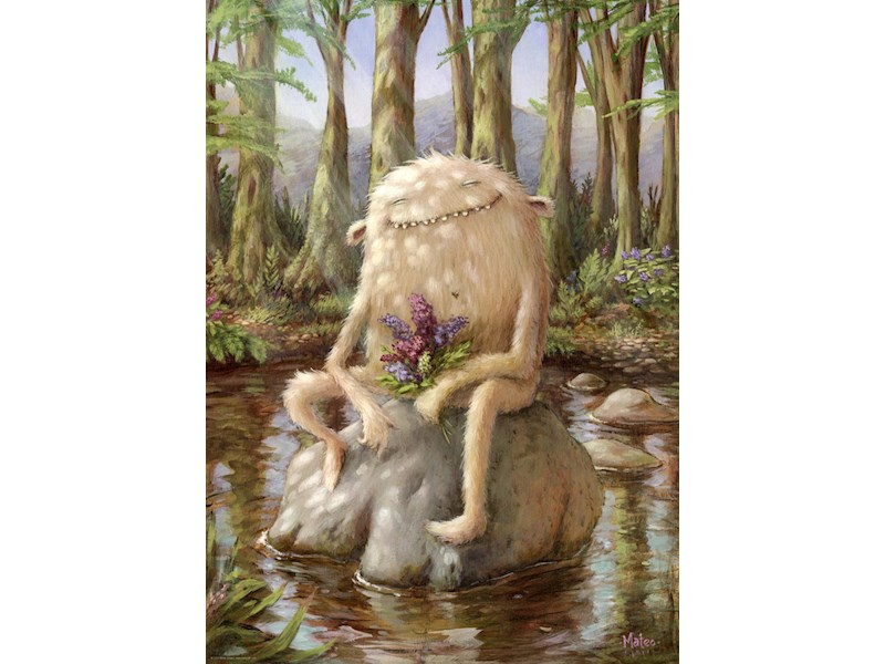 Unmöglich, diesem verschmitzten Monster-Grinsen zu widerstehen! Schon gar nicht in Verbindung mit dem entzückenden Blumensträusschen. Zum Dahinschmelzen! Gelegte Grösse: 50 x 70cm