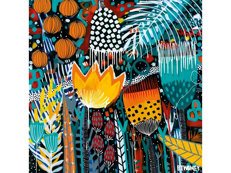 Die australische Künstlerin Bernadette Twomey huldigt ihrem Heimatkontinent mit lebensfrohen Blumengemälden, mit denen man sich nach Downunder puzzeln kann. Gelegte Grösse: 56 x 56cm