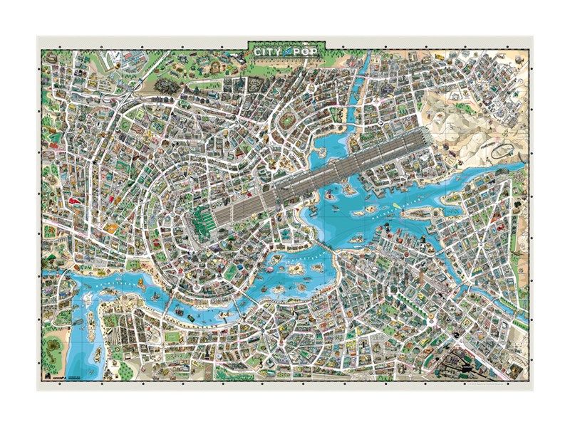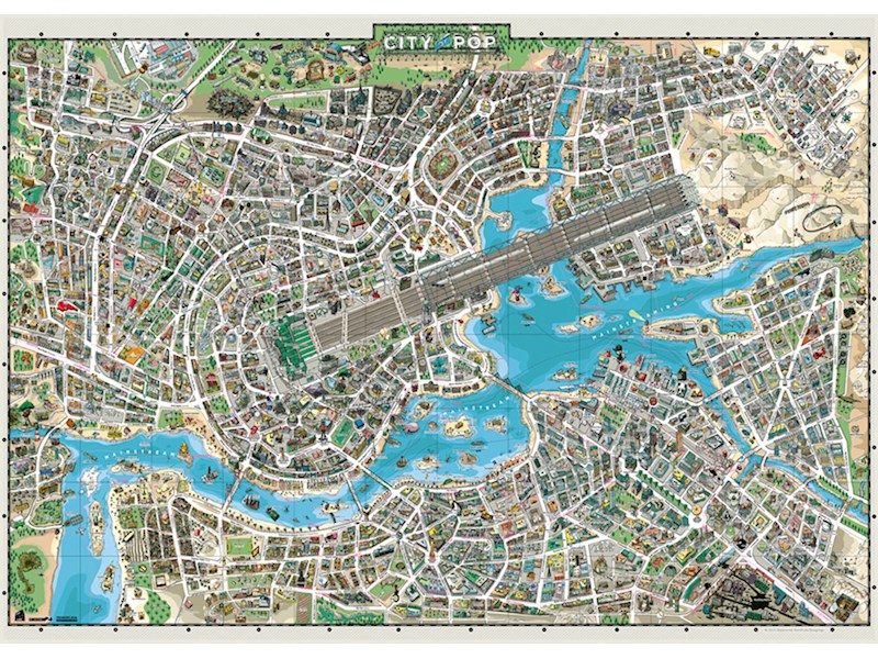Diese imaginäre Stadt ist eine ausgeklügelte Darstellung der populären Musikkultur. Stadteile sind Musikstile, Strassen, Plätze und Gebäude sind Bands und Musiker. Genial!