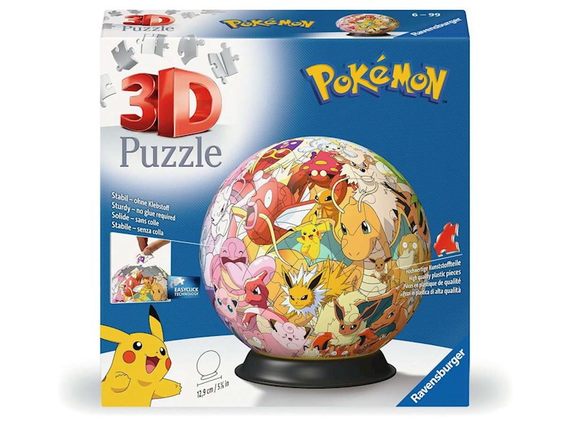 Dieses coole Pokémon Motiv macht nicht nur Spass zu puzzeln, sondern sieht auch toll aus in deinem Zimmer! Aus 72 gewölbten Kunststoff-Puzzleteilen, die dank Easyclick Technology perfekt zusammen passen, entsteht Stück für Stück dieser stabile 3D Puzzle-Ball, ganz ohne Kleben. Die Nummerierung der Teile auf der Rückseite erleichtert das Vorsortieren und ermöglicht einfaches Puzzeln nach Zahlen.