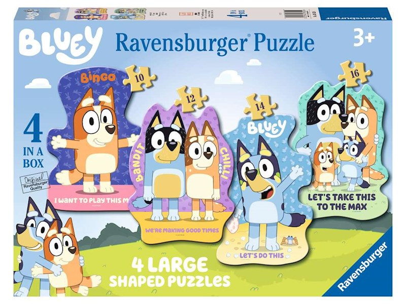 Vierfacher Puzzlespass: Entdecke Bluey und seine Freunde auf 4 farbenfrohen Puzzlemotiven! Jedes der vier Puzzles ist formgestanzt und etwa 25 x 35 cm gross; die grossen Puzzleteile aus extradickem Karton variieren von 10 Teilen bis 16 Teilen und sind perfekt geeignet für Kinder ab 3 Jahren. Beim Puzzeln trainieren Kinder spielerisch ihre Konzentration und Feinmotorik und haben dabei jede Menge Spass.