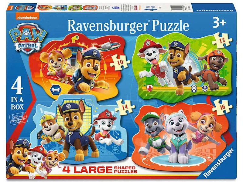Paw Patrol 4 Large Shaped Puzzle - Anz. Teile: 10, 12, 14, 16, Paw Patrol