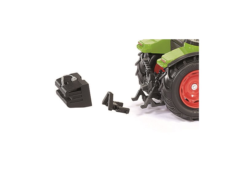 Zubehörartikel bestehend aus einem Adapterset für die Front- und Heckkupplung der 1:32 SIKUFarmer-Traktoren sowie einem Frontgewicht aus Metall.