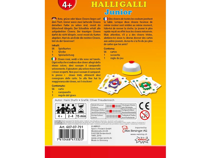 AMIGO • Gesellschaftspiel • AMI-07791Ersatzteile & Zubehör für Halli Galli Junior - KartenspielProdukttyp:GesellschaftspielAlter:ab 4 JahreArtikelNr:AMI-07791Hersteller:AMIGOHersteller Nr:07791EAN Code:4007396077919Ersatzteile & ZubehörGesellschaftspielAnzeigenAusblendenAMI-07791