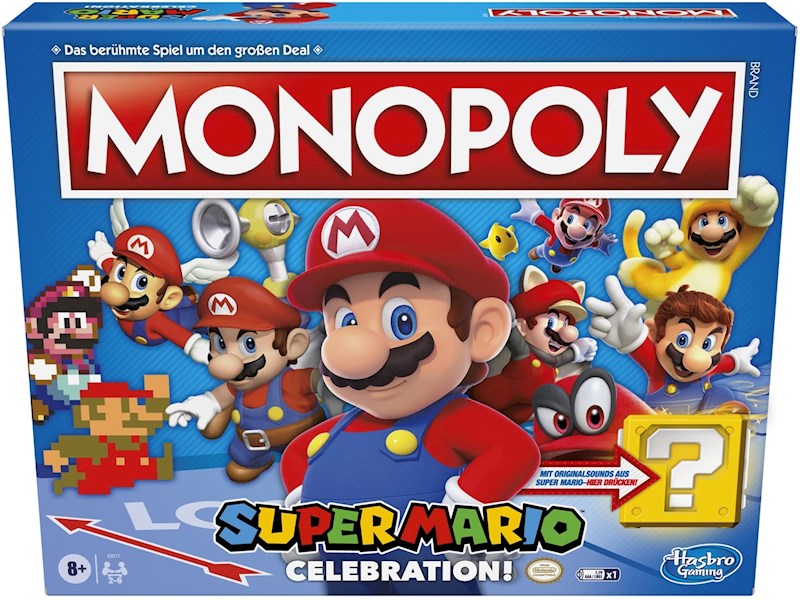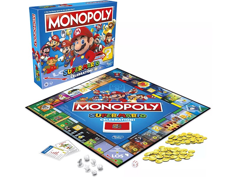 Monopoly Super Mario Celebration liefert action- geladene Spannung gemischt mit Videospiel- Nostalgie. Die Spielfiguren wurden für Super Mario entworfen, die Orte sind aus den kultigen Spielen. Mit Soundeffekten aus den Spielen.
