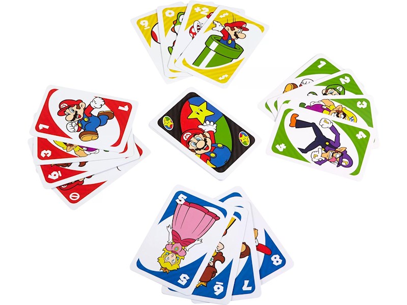 Mario, Luigi und all ihre Freunde sind jetzt Teil eines besonderen UNO Kartenspiels! Es ist das allseits beliebte UNO, doch diese Version enthält noch eine besondere Mario Block-Karte, mit der ein Charakter unbesiegbar wird!