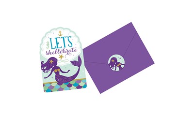 Einladungskarten mit Umschlag Mermaid Wishes. Bevor die Party beginnen kann, müssen die kleinen Gäste natürlich erst eingeladen werden. Mit diesen bunten Einladungskarten machen schon die Vorbereitungen Spass. Packung à 8 Karten