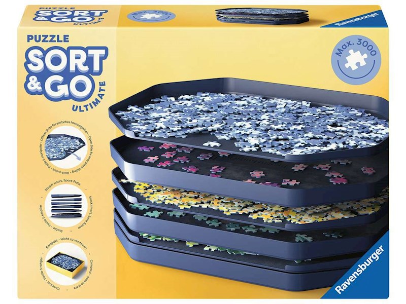 Das innovative Sortiersystem Puzzle Sort & Go von Ravensburger ist der ideale Helfer für alle Puzzlefans. In sechs extra-grossen, stapelbaren Sortierschalen können bis zu 3000 Puzzleteile mühelos nach Form und Farbe vorsortiert und sicher verstaut werden. Die offene Kante ermöglicht ein einfaches Herausschieben der Puzzleteile, während die rutschfeste Unterseite für Stabilität sorgt. Dank der diagonalen Stapelfunktion lassen sich die Schalen platzsparend aufbewahren – perfekt für ein strukturiertes Puzzelerlebnis!