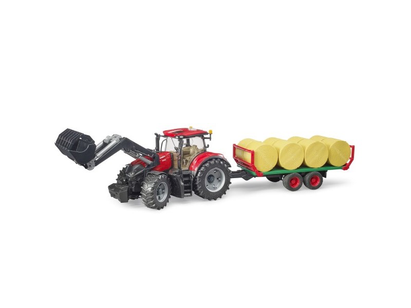 Vor allem der Herbst ist die Zeit, in der die überall zu sehenden Silage- und Strohrundballen vom Bauern in den Stall, oder in die Scheune gebracht werden müssen. Für diese Tätigkeiten gibt es ein neues, faszinierendes Gespann von BRUDER. Die Optum Baureihe bietet leistungsstarke, kompakte und äusserst wendige Traktoren mit einem exzellenten Leistungsgewicht. Diese Modelle meistern jede Arbeit mit maximaler Leistung, Effizienz und Zuverlässigkeit und beeindrucken durch ihr neues Design. In Sachen Design, Funktionalität und Qualität steht das neue Modell von BRUDER im Massstab 1:16 dem Vorbild in nichts nach, getreu dem Motto - just like the real thing. Die Fahrerkabine ist voll verglast und die Türen sind einfach zu öffnen. Die aufklappbare Motorhaube gewährt Einblick auf den imposanten Motor. Ausgezeichnete Steuerbarkeit und Fahrkomfort werden durch die eingebaute Pendelachse und die durch das Schiebedach einsetzbare Lenkverlängerung erreicht. Für noch mehr Spielwert ist bei diesem Modell ein voll funktionsfähiger Frontlader montiert. Durch die höhenverstellbare Heckkupplung können alle Anhänger der Profiserie benutzt werden. Für noch mehr Spielspass sind die neuen, abnehmbaren Räder angebracht. Selbstverständlich passen an diesen Traktor alle landwirtschaftlichen Anhänger und landwirtschaftlichen Arbeitsgeräte aus dem Hause BRUDER. Der BRUDER Ballentransportanhänger zeichnet sich durch klappbare Begrenzungs-Rungen aus und wird mit 8 Rundballen ausgeliefert. Damit ist dieser Anhänger der perfekte Partner für den Ballentransport. Zur Erweiterung des ohnehin schon grossen Spielwerts, kann aus dem grossen bworld Sortiment das Figurenset Landwirt (Art.-Nr. 310.62610) dazu kombiniert werden.