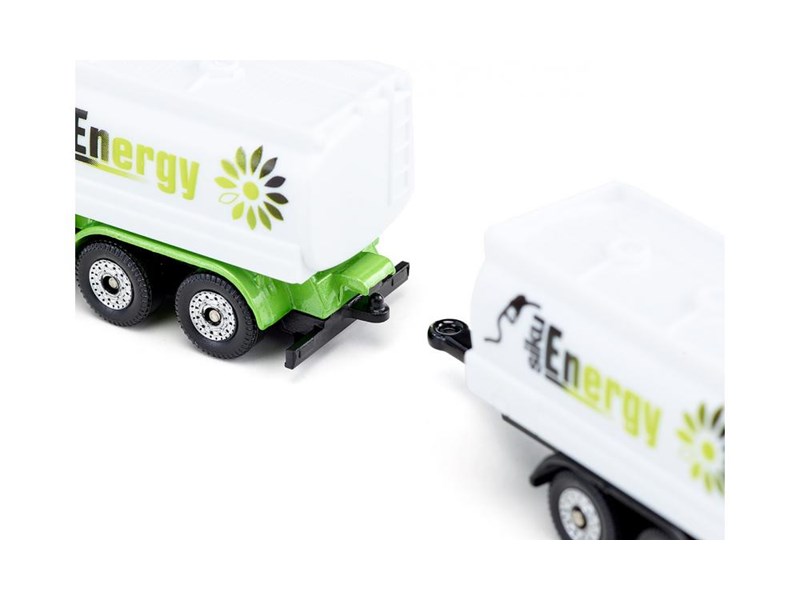 Wenn die Tankanzeige im roten Bereich ist, wird es höchste Zeit für die SIKU Autos, Lastwagen, Traktoren und Busse, den nächsten Tankstopp an der SIKUWORLD Tankstelle einzulegen. Die Tankstelle wird vom neuen SIKU Energy Tanklastzug versorgt: ein Dreiachs-Tankwagen mit leuchtend grünem Fahrerhaus und einem Tandemanhänger mit einem Tankaufbau aus Kunststoff.
