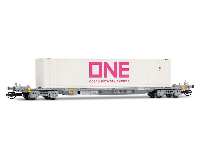 versandbereit in 3 - 4 Arbeitstagen 4-achsiger Containertragwagen grau mit weissem 45'-Container ONE Ep. VI