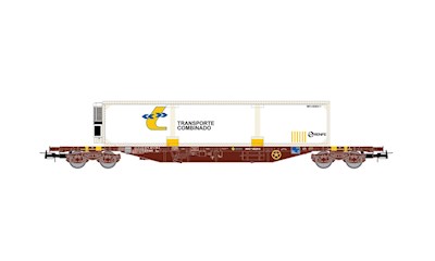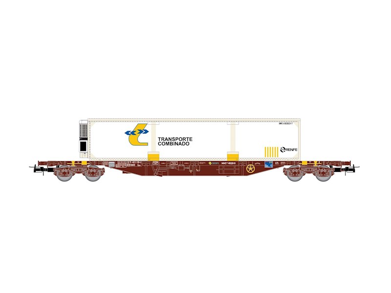 Liefertermin unbekannt RENFE 4-achsiger Containerwagen MMC3 oxidrot mit Kühlcontainer Transporte Com