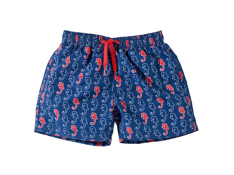Badeshorts für Jungen und Mädchen. Schnelltrocknende Mikrofaser, 100% Polyester, elastischer Bund, durchgehendes Bindeband. Innenslip, 100% Polyester und 3 Taschen.