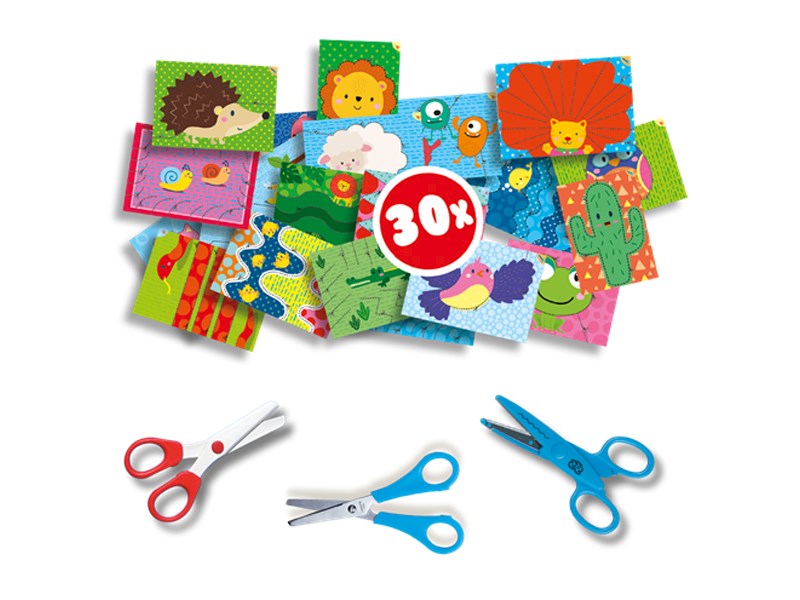 Lerne Schritt für Schritt, wie man schneidet. Du beginnst mit einer sicheren Kinderschere, mit der du weder Finger, Haare noch Kleidung schneiden kannst - nur Papier! Beherrschst du die Technik? Wenn du dich traust, kannst du versuchen, mit einer echten Schere zu schneiden. Bist du ein Genie mit der Schere? Versuche, die Karten mit der Zick-Zack-Schere zu vervollständigen! Mit der Zickzackschere kannst du die Zähne des Krokodils oder die Stacheln des Igels in einem Zug ausschneiden.