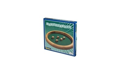 Hevea-Holz, Durchmesser 400 mm, Würfelfläche mit Filz, mit 5 Holzwürfel, Kantenlänge 25 mm.
