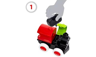 Tuut, tuut! Der 30411 Push & Go-Zug mit Dampf kommt angefahren. Diese Spielzeugeisenbahn für Kleinkinder hat eine batteriebetriebene Push-and-Go-Funktion, die die Entwicklung der kindlichen Feinmotorik und Bewegung fördert. Durch Drücken des Knopfs fährt der Zug los und aus dem Schornstein strömt ungefährlicher Wasserdampf. Folge dem Zug, fang ihn ein und der Spass kann von vorne beginnen.