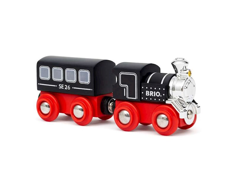 Alle einsteigen in den 36140 Sonderzug für 2026. Dieser limitierte Dampfzug ist zwar klein, hat es aber in sich: Mit seinem auffälligen Design in Schwarz, Silber und Rot ist er ein echter Blickfang in jeder BRIO World Eisenbahnanlage. Mit seinen klassischen Details und kräftigen Farben ist er ein Muss für Sammler und kleine Zugfans. Nur für kurze Zeit erhältlich – hol ihn dir, bevor das Jahr 2026 vorbei ist.